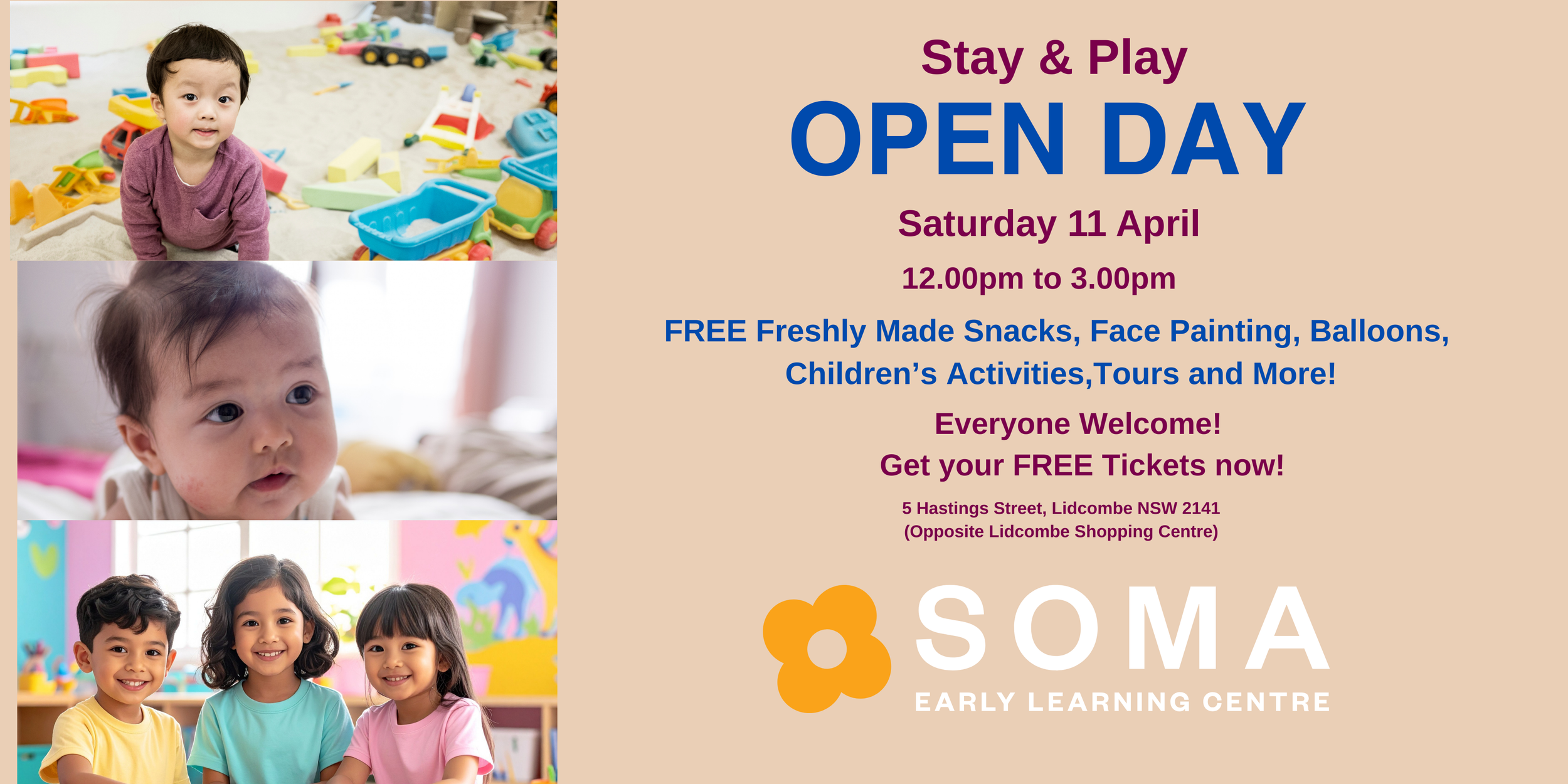 OPEN DAY Saturday 11th April 12.00pm to 3.00pm Stay & Play OPEN DAY Get Your FREE Tickets Now! OPEN DAY Saturday 11th April 12.00pm to 3.00pm Stay & Play OPEN DAY Get Your FREE Tickets Now! OPEN DAY Saturday 11th April 12.00pm to 3.00pm Stay & Play OPEN DAY Get Your FREE Tickets Now! GET YOUR FREE OPEN DAY TICKETS! Book a Tour (02) 9698 9935 Book a Centre Tour Today! Enrolling Now! Book a Centre Tour Today! Enrolling Now! Book a Centre Tour Today! Enrolling Now! 5 Hastings Street, LIDCOMBE NSW 2141